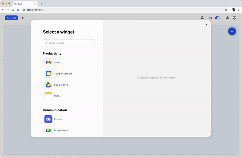 I designed a concept web application where users can add widgets from different apps onto a singular dashboard page.