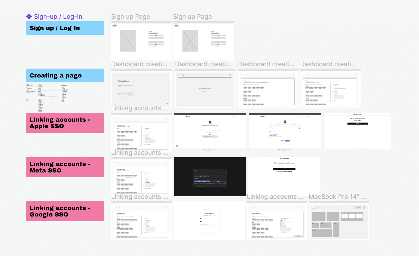 How do we make signing into multiple accounts for different widgets effortless? To streamline this process, I created a clear user flow and utilized single sign-on (SSO) in the flow.